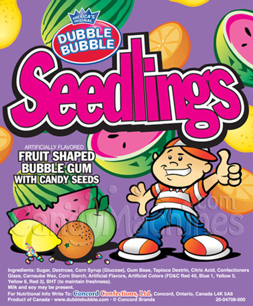 Add a burst of fun and flavor to your vending machine with Seedlings Candy Filled Gumballs! These playful, fruit-shaped gumballs by Dubble Bubble are not only eye-catching in shape and color—they’re also filled with tiny candy “seedlings” inside, delivering a surprising and delightful crunch with every chew.
